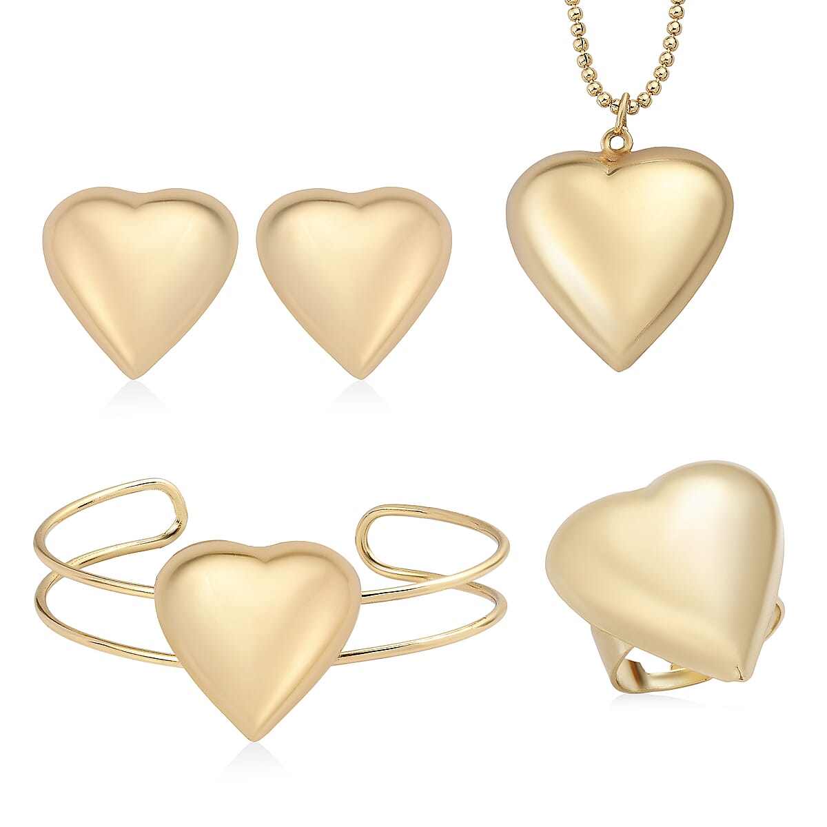 4 Piece Set - Bangle and Necklace and Ring and Earring Pure Yellow Brass