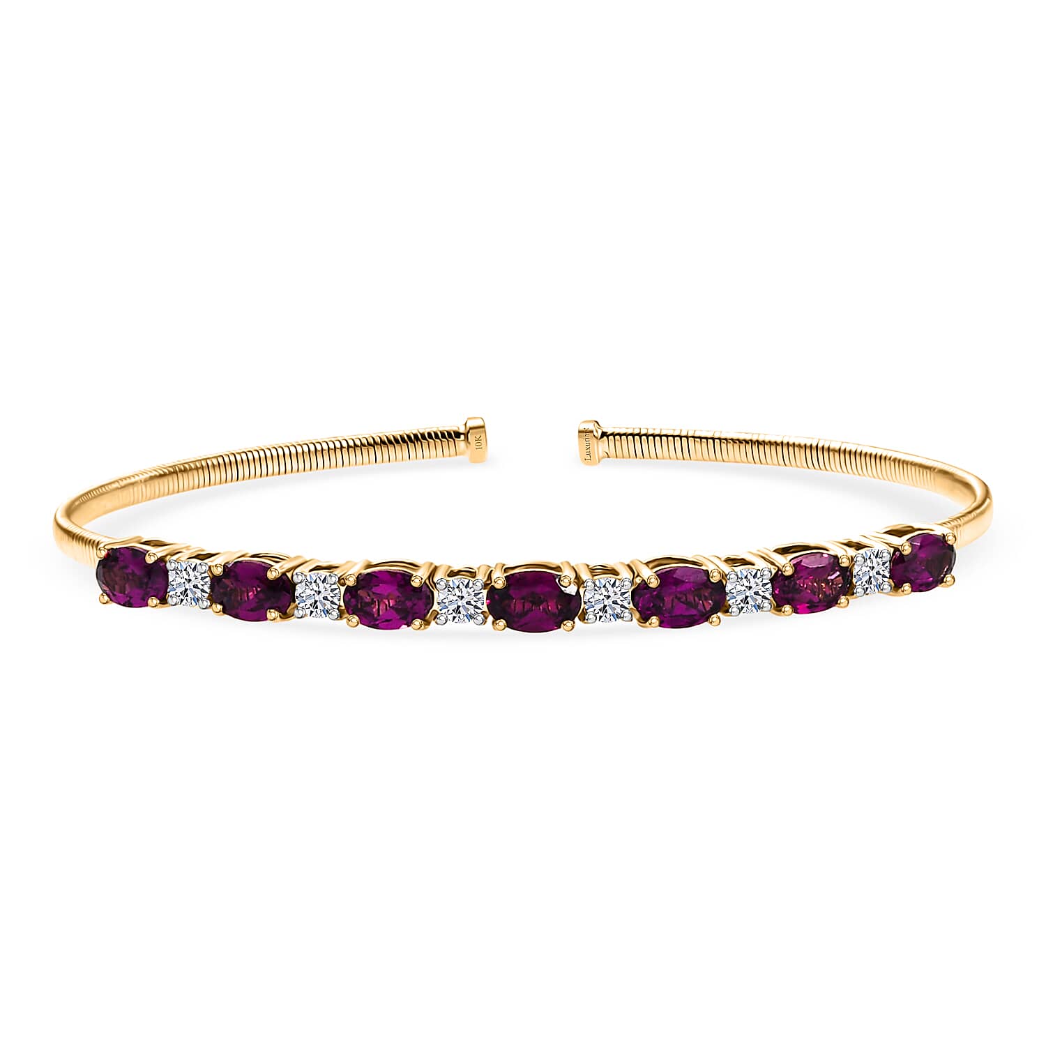 Upgrade your look with this gemstone and lab-grown diamond bracelet in 10K yellow gold. This elegant bangle bracelet showcases rich gemstones accented by softly sparkling lab-grown diamonds. Its smooth-hinged design offers refined brilliance, perfect for both day and evening wear.