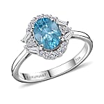Certified & Appraised AAA Cambodian Blue Zircon and Luxuriant Diamond G-H SI 2.50 ctw Ocean Crest Ring in 10K White Gold (Size 7.0)