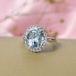 Certified & Appraised AAA Mangoro Aquamarine and Luxuriant Diamond G-H SI 3.11 ctw Cocktail Ring in 10K White Gold (Size 6.0)