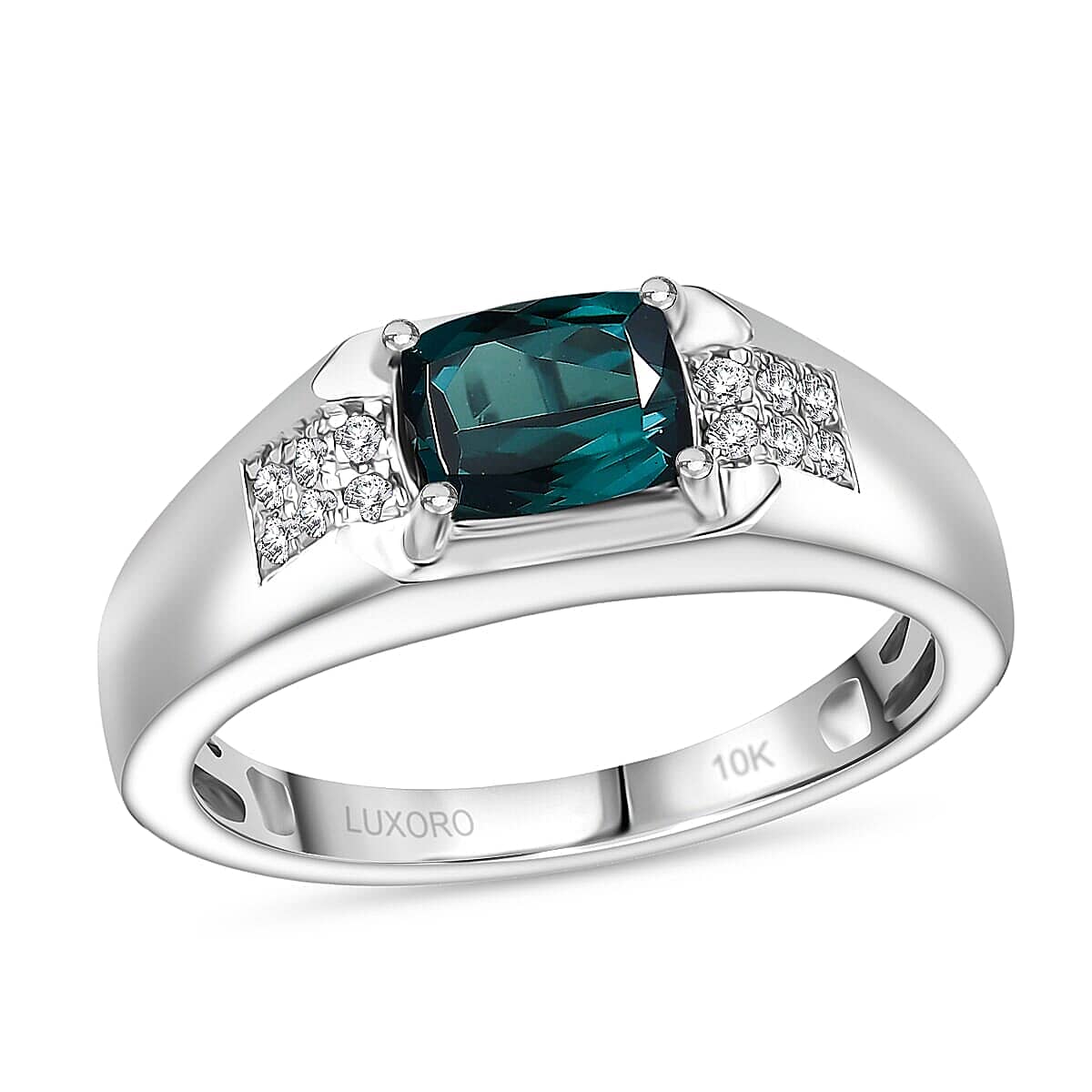 Command attention with the Luxoro indicolite ring in 10k white gold. This certified men's ring boasts a striking greenish-blue AAA Monte Belo gemstone. This gold ring’s bold design speaks to your sophisticated taste and powerful style.
