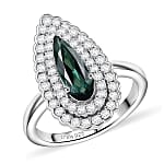 D'Joy AAA Pirineu Lagoon Tourmaline and Moissanite 1.50 ctw Ring in Rhodium Over Sterling Silver (Size 6.0)