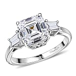 D'Joy Asscher Cut Moissanite 3.00 ctw Art Deco Ring in Rhodium Over Sterling Silver (Size 11.0)
