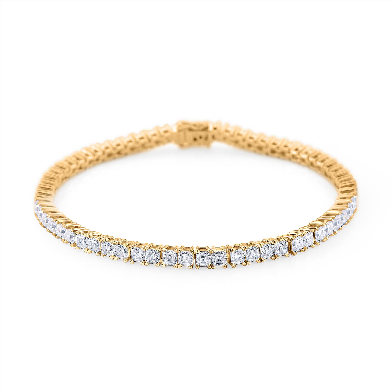 D'Joy Asscher Cut Moissanite 9.20 ctw Eternal Shine Line Bracelet in 18K Vermeil Yellow Gold Over Sterling Silver (8.00 In)