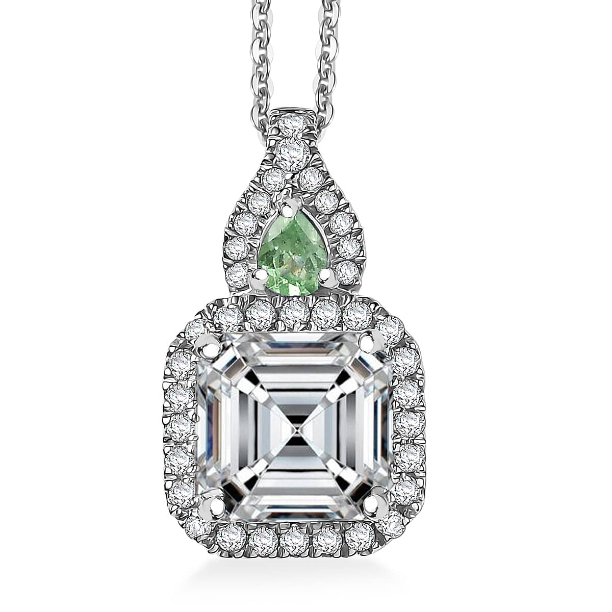 D'Joy Asscher Cut Moissanite and Narsipatnam Alexandrite 3.50 ctw Pendant Necklace in Rhodium Over Sterling Silver 20 Inches