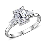 D'Joy Emerald Cut Moissanite 2.00 ctw Art Deco Ring in Rhodium Over Sterling Silver (Size 10.0)