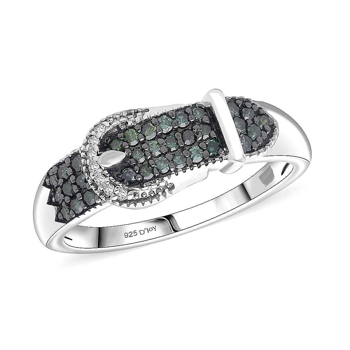 D'Joy Green and White Diamond 0.25 ctw Ring in Rhodium Over Sterling Silver