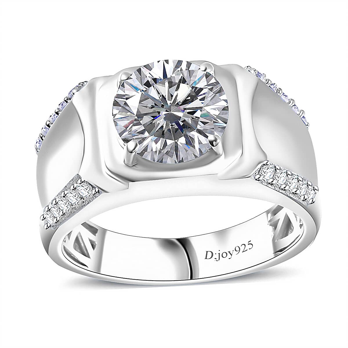 D'Joy Moissanite 3.15 ctw Men's Ring in Rhodium Over Sterling Silver (Size 14.0)