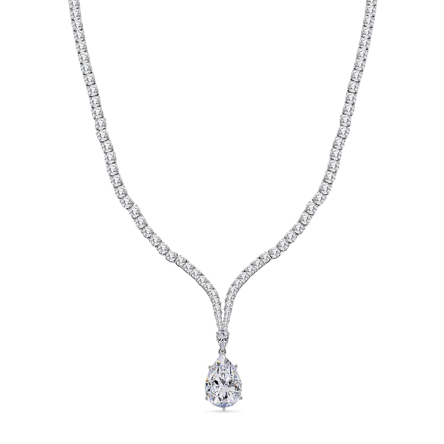 D'Joy Moissanite 59.85 ctw Celebrity Glam Tear Drop Necklace in Rhodium Over Sterling Silver 18 Inches