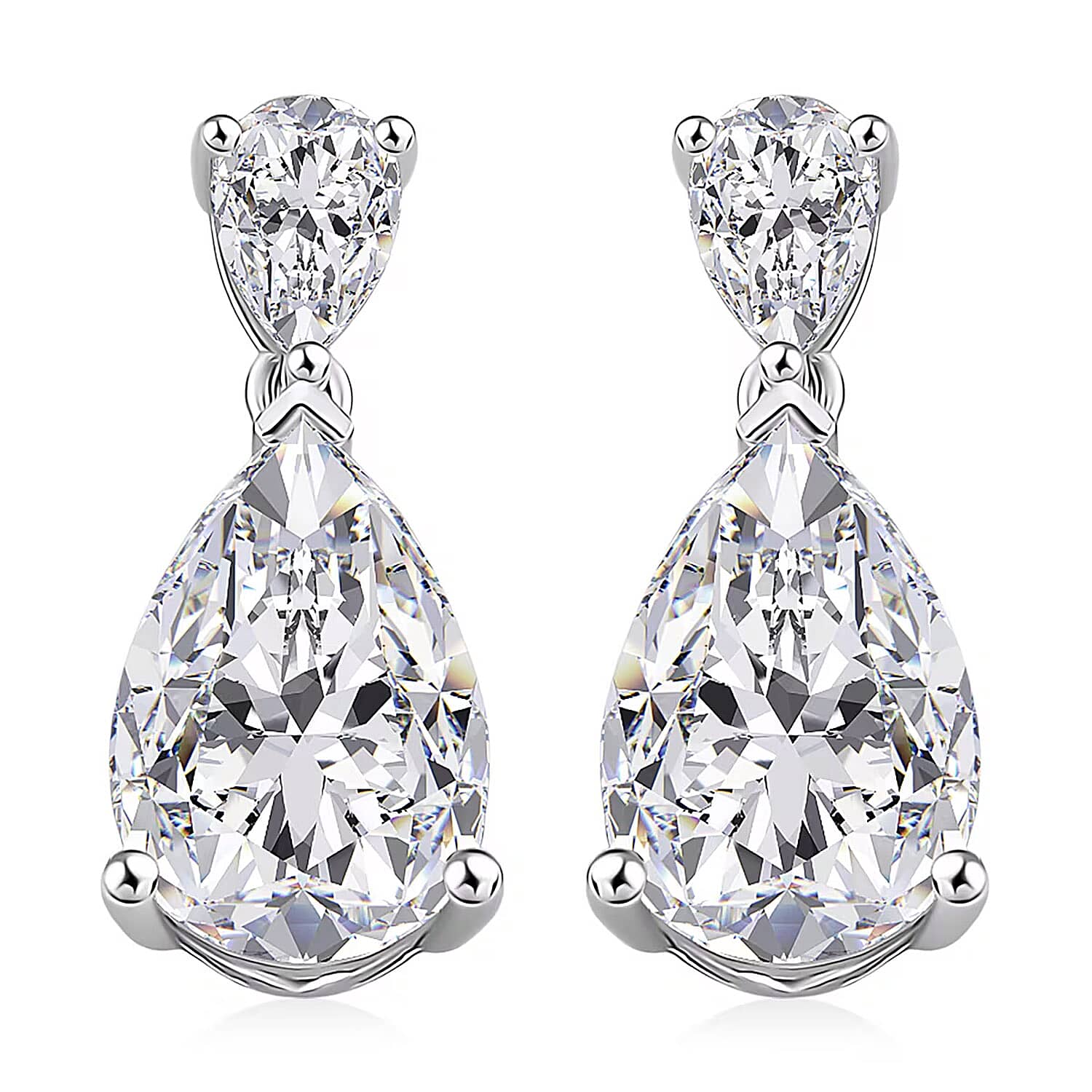 D'Joy Moissanite 6.60 ctw Celebrity Glam Tear Drop Earrings in Rhodium Over Sterling Silver