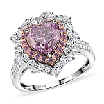 D'Joy Pink and White Moissanite and Pink Sapphire 3.15 ctw Crowned Heart Glow Ring in 18K Vermeil RG and Rhodium Over Sterling Silver (Size 8.0)