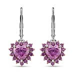 D'Joy Pink Moissanite and Pink Sapphire 2.15 ctw Crowned Heart Glow Earrings in 18K Vermeil RG and Rhodium Over Sterling Silver