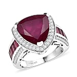 D'Joy Premium African Ruby (FF) and Moissanite 10.85 ctw Royal Legacy Ring in Rhodium Over Sterling Silver (Size 6.0)