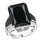 D'Joy Premium Thai Black Spinel and Multi Gemstone 20.25 ctw Crowned Aura Ring in Rhodium Over Sterling Silver (Size 10.0)