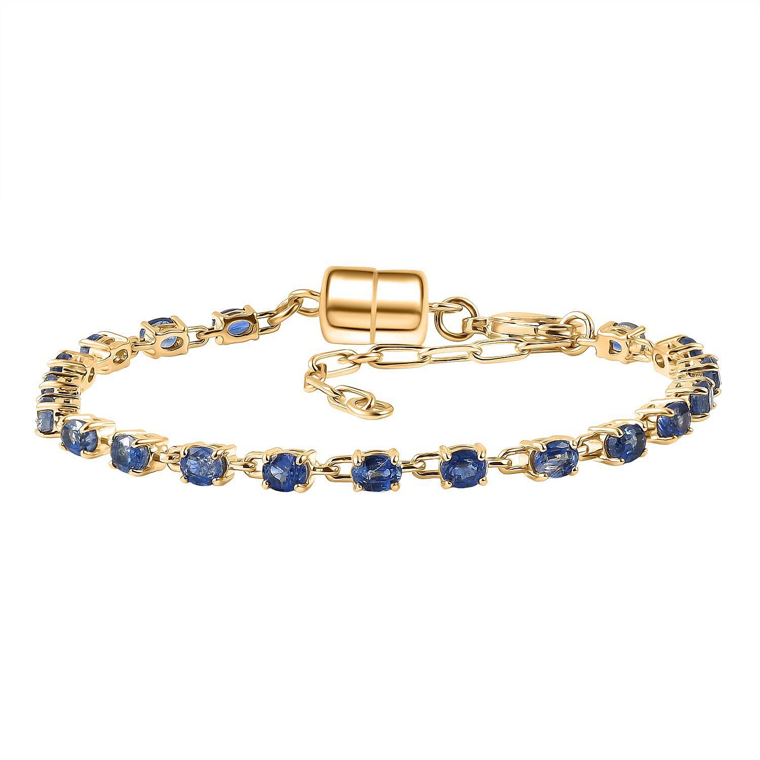 EverTrue Kashmir Kyanite 4.60 ctw River of Serenity Bracelet in 18K Yellow Gold Plated (6.5-8.0In)