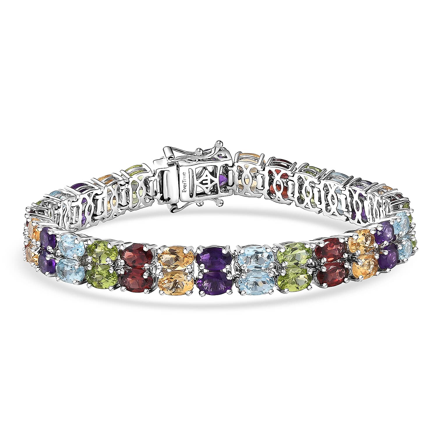 EverTrue Multi Gemstone 26.50 ctw Two Row Carpet Bracelet in Platinum Bond (7.25 In)