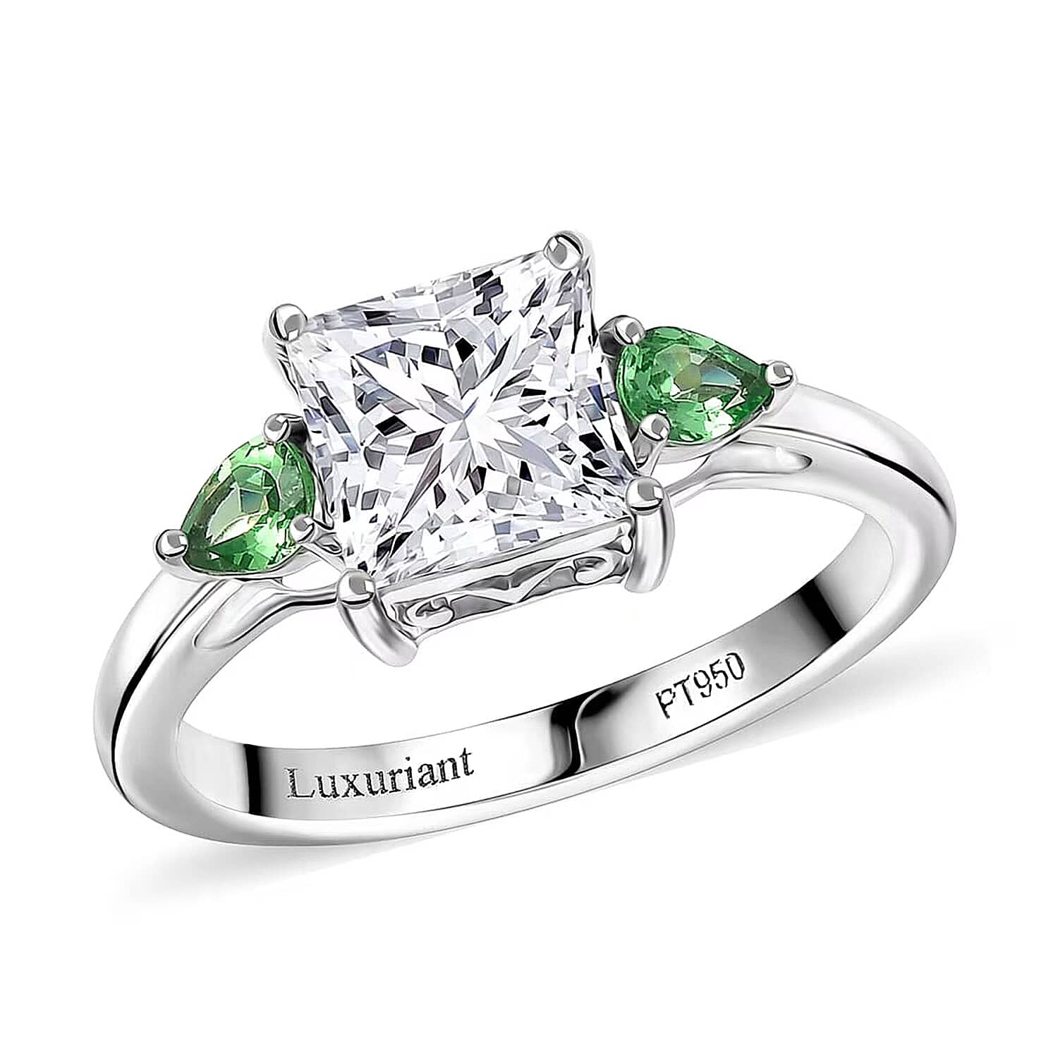 IGI Certified 950 Platinum Luxuriant Lab Grown Diamond (E-F, VS), Tsavorite Garnet 3 Stone Ring (Size 11.0) 2.40 ctw
