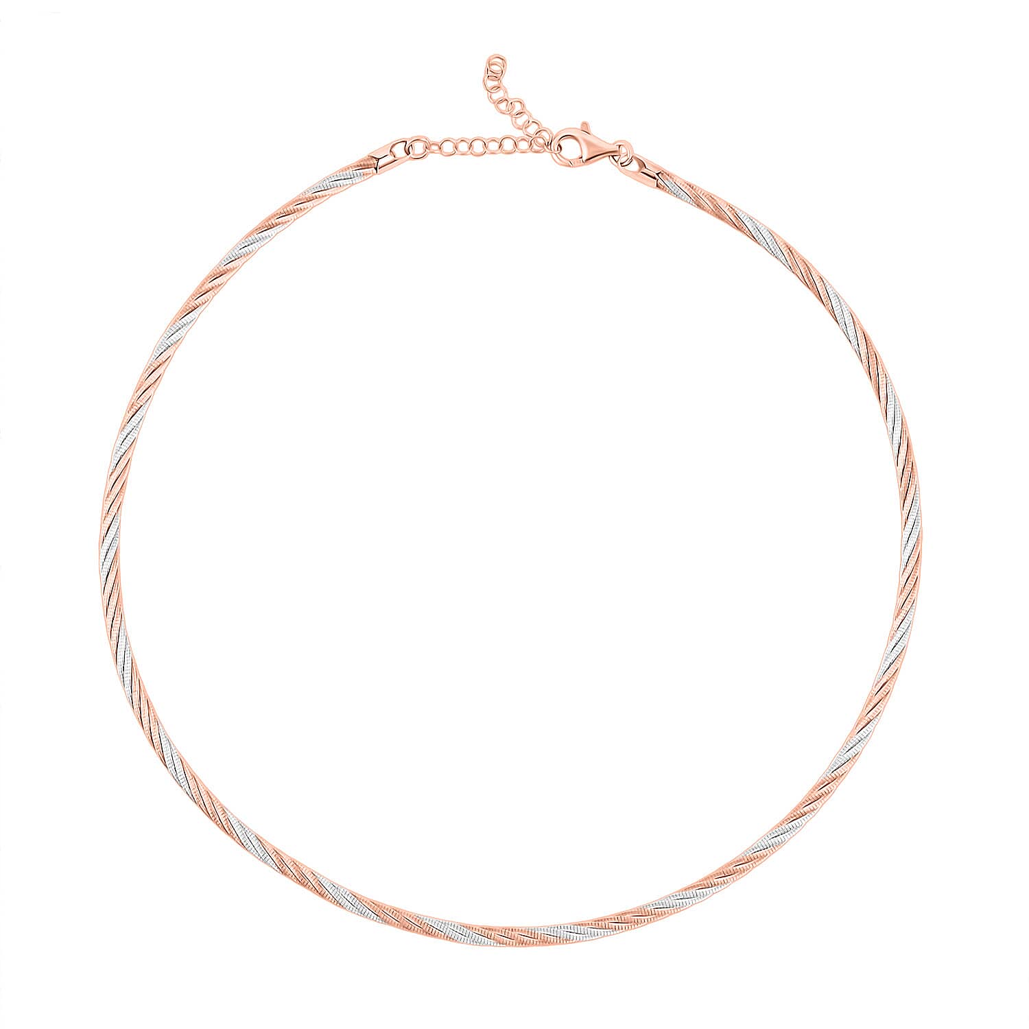 Italian Twisted Omega Chain Necklace in 14K RG and Rhodium Over Sterling Silver 19.07 Grams 17 Inches
