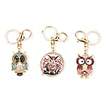 Livmore Multi Color Glass and Crystal 3-piece Set Owl Keychain