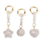 Livmore White Magic Color Glass and Crystal 3-piece Set Heart, Ball and Star Keychain in Goldtone