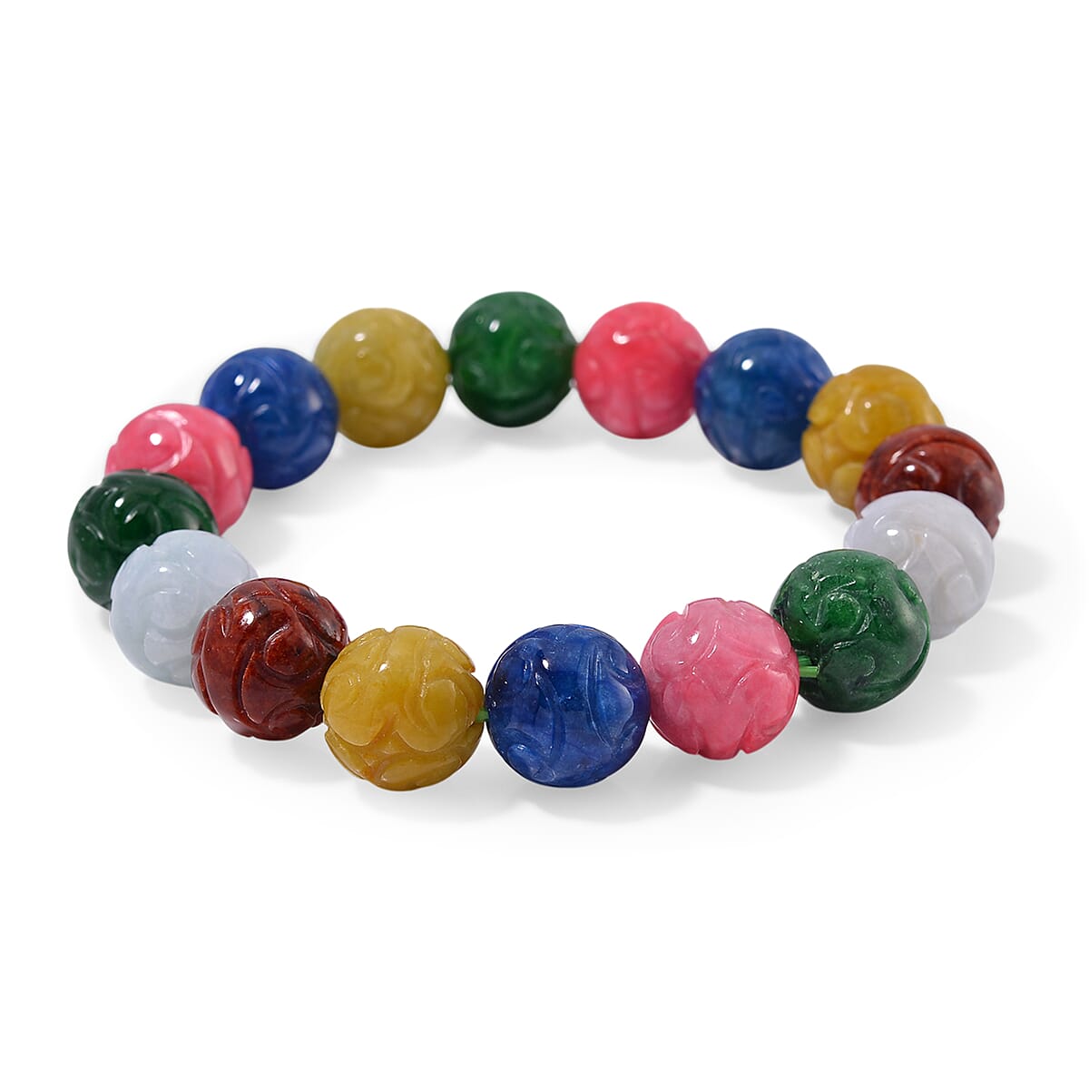 Multi Color Jade 235.00 ctw Beaded Stretch Bracelet (6.5-7In)
