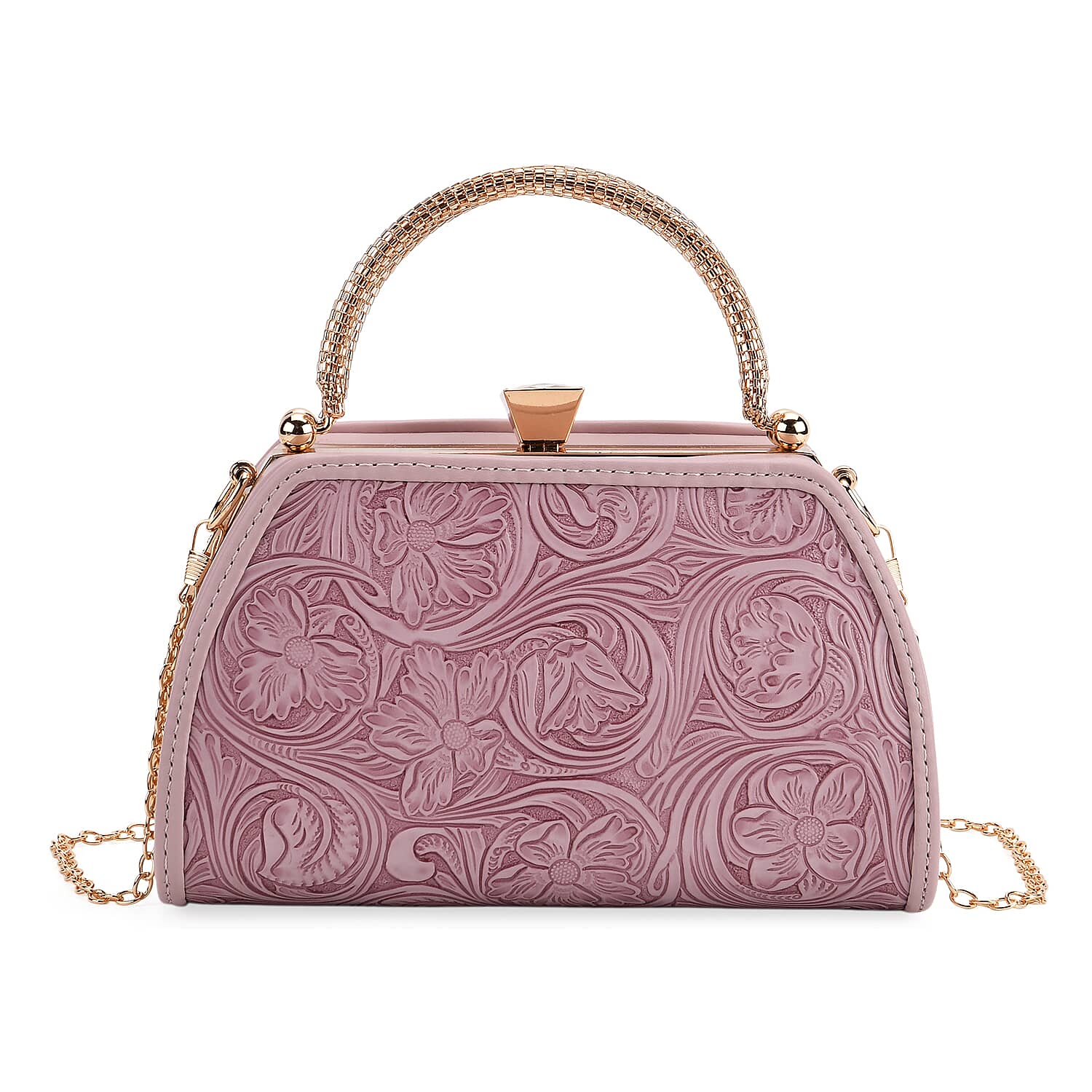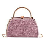 Purple Flower Embossed Faux Leather Trapezoidal Clutch Bag with Shoulder Strap