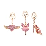 Set of 3 Multi Color Austrian Crystal, Enameled Elephant, Cat and Tiger Keychain in Dualtone