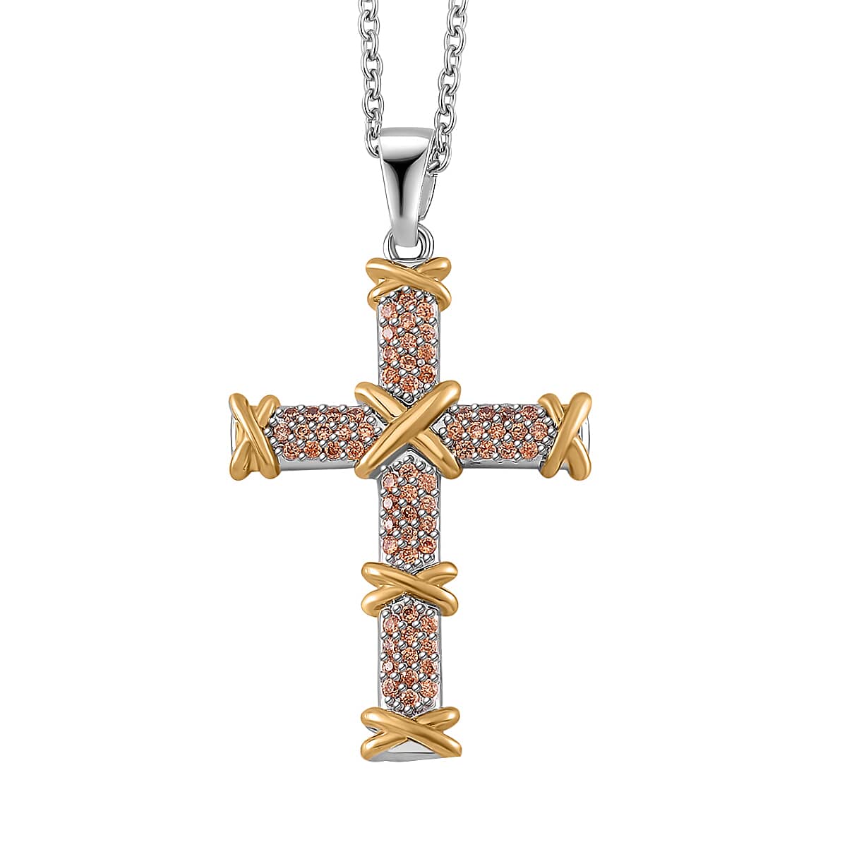Simulated Champagne Color Diamond 3.50 ctw XOXO Cross Necklace 20-22 Inches in Dualtone