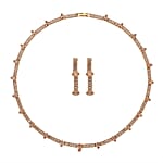 Simulated Champagne Color Diamond Designer Style Everyday Luxury Set Necklace 20 Inches and Earrings in Goldtone