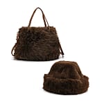 Tamsy Brown Solid Bucket Fur Hat Set with Bag