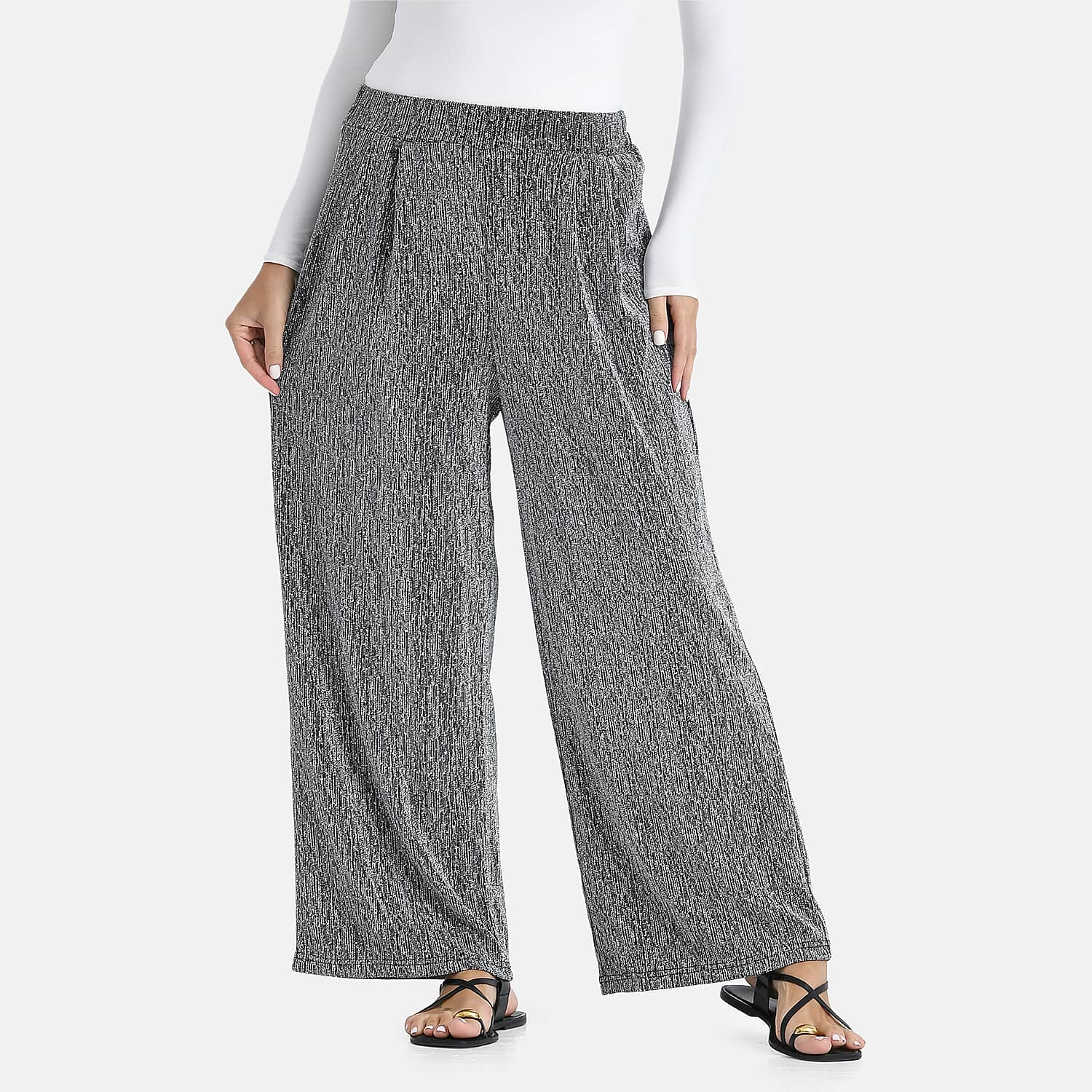 Tamsy Silver Lurex Sparkly Sequins, Print Pant- One Size fits Most