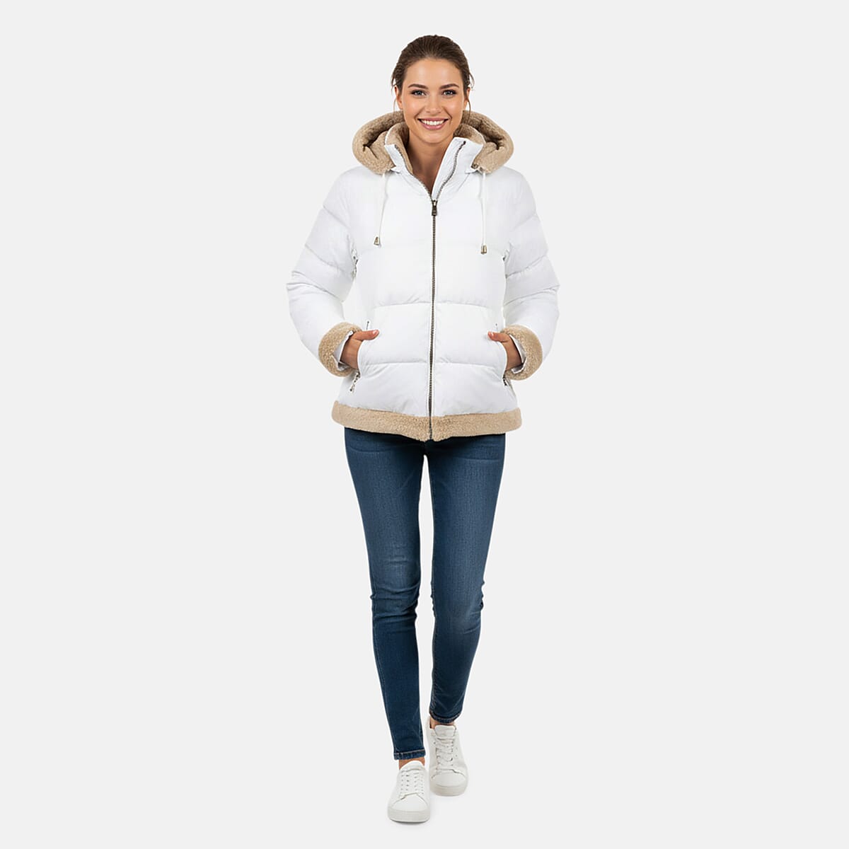 Tanbrige White and Khaki Sherpa Trim Puffer Jacket - XL