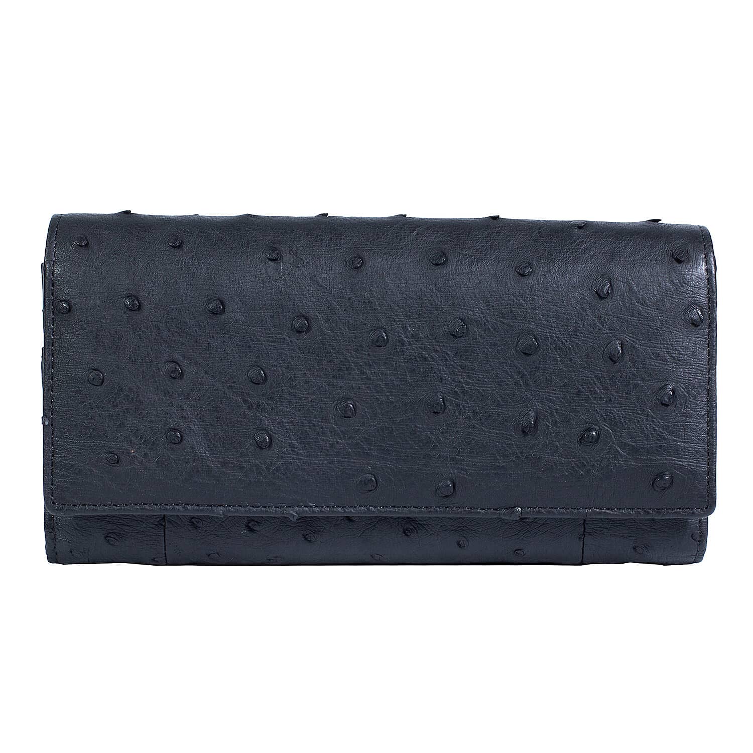 The Grand Pelle Black Ostrich Genuine Leather Envelope Clutch Bag