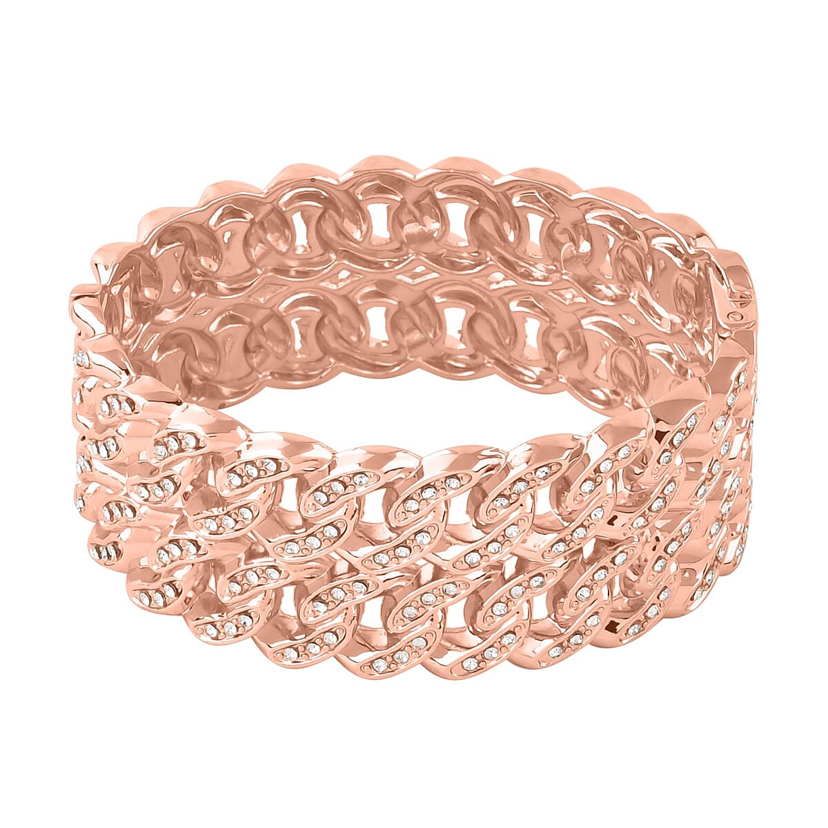 White Austrian Crystal Bangle Bracelet in Rosetone (6.50 In)