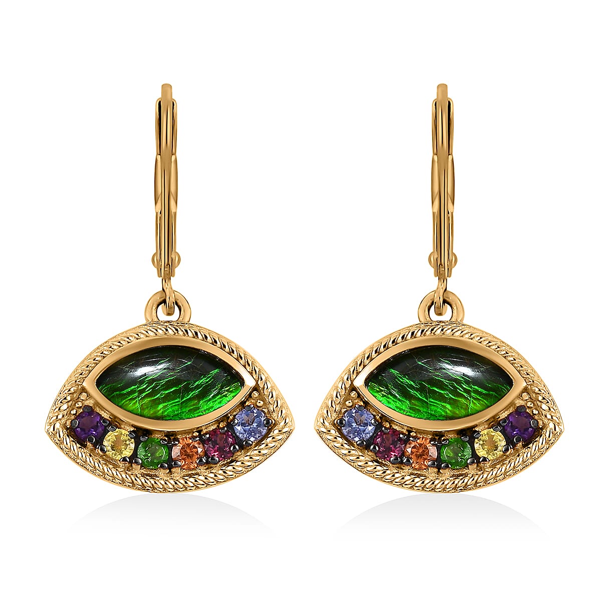 0.60 ctw Canadian Ammolite and Multi Gemstone Dangling Earrings in Vermeil YG Over Sterling Silver