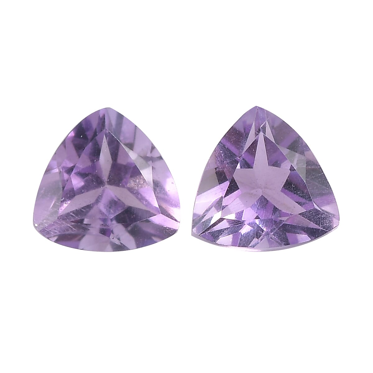 Add modern charm with this Rose De France amethyst set. The trillion cut adds contemporary flair to its soft lavender color. Perfect for sleek and stylish jewelry designs.
