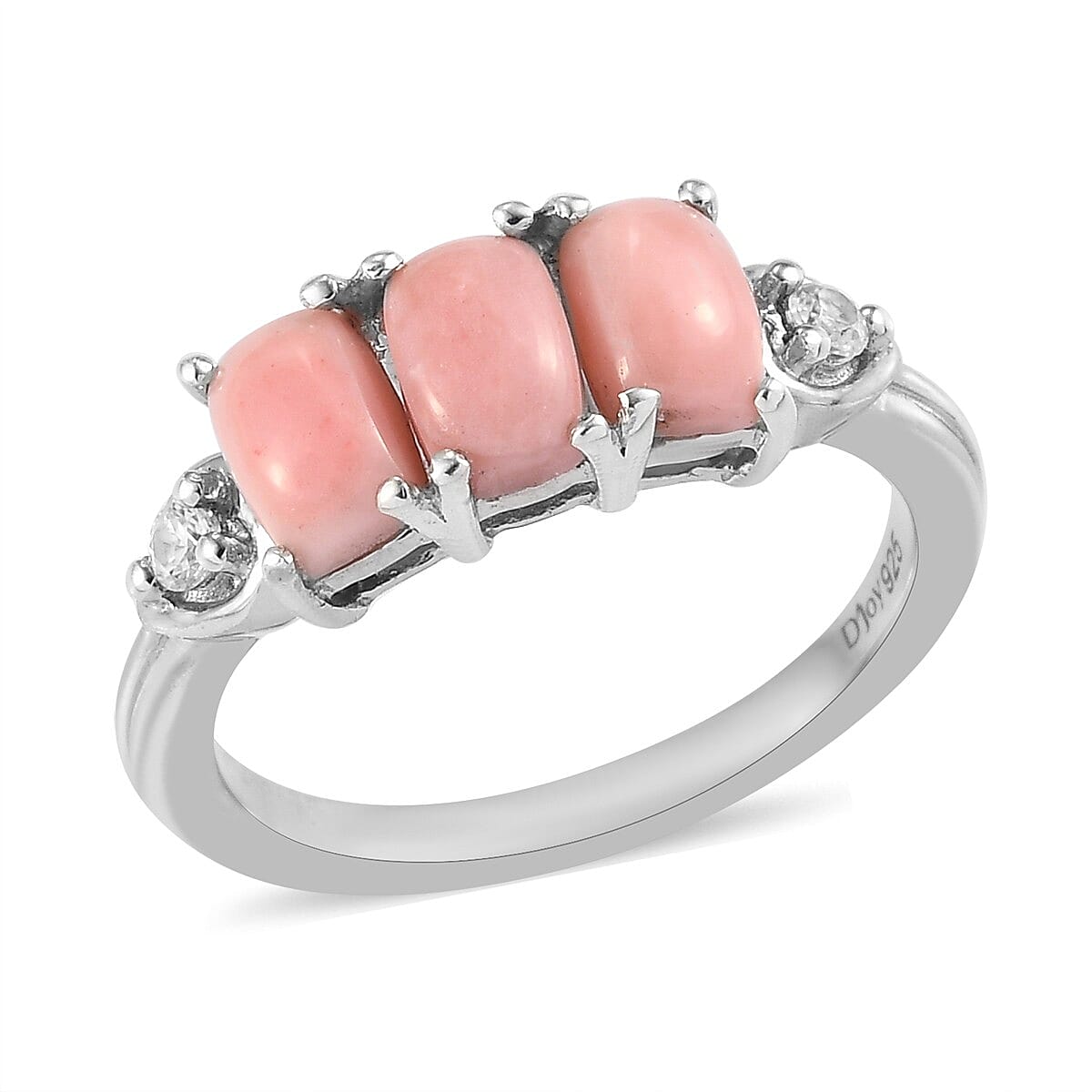 1.35 ctw Peach Opal and Zircon 3 Stone Ring in Platinum Over Sterling Silver (Size 9.0)