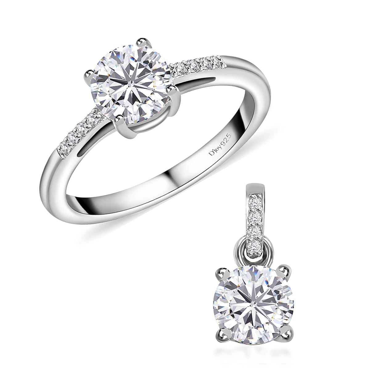 100 Facet Moissanite 1.65 ctw Ring (Size 10.0) and Pendant without Chain in Platinum Over Sterling Silver