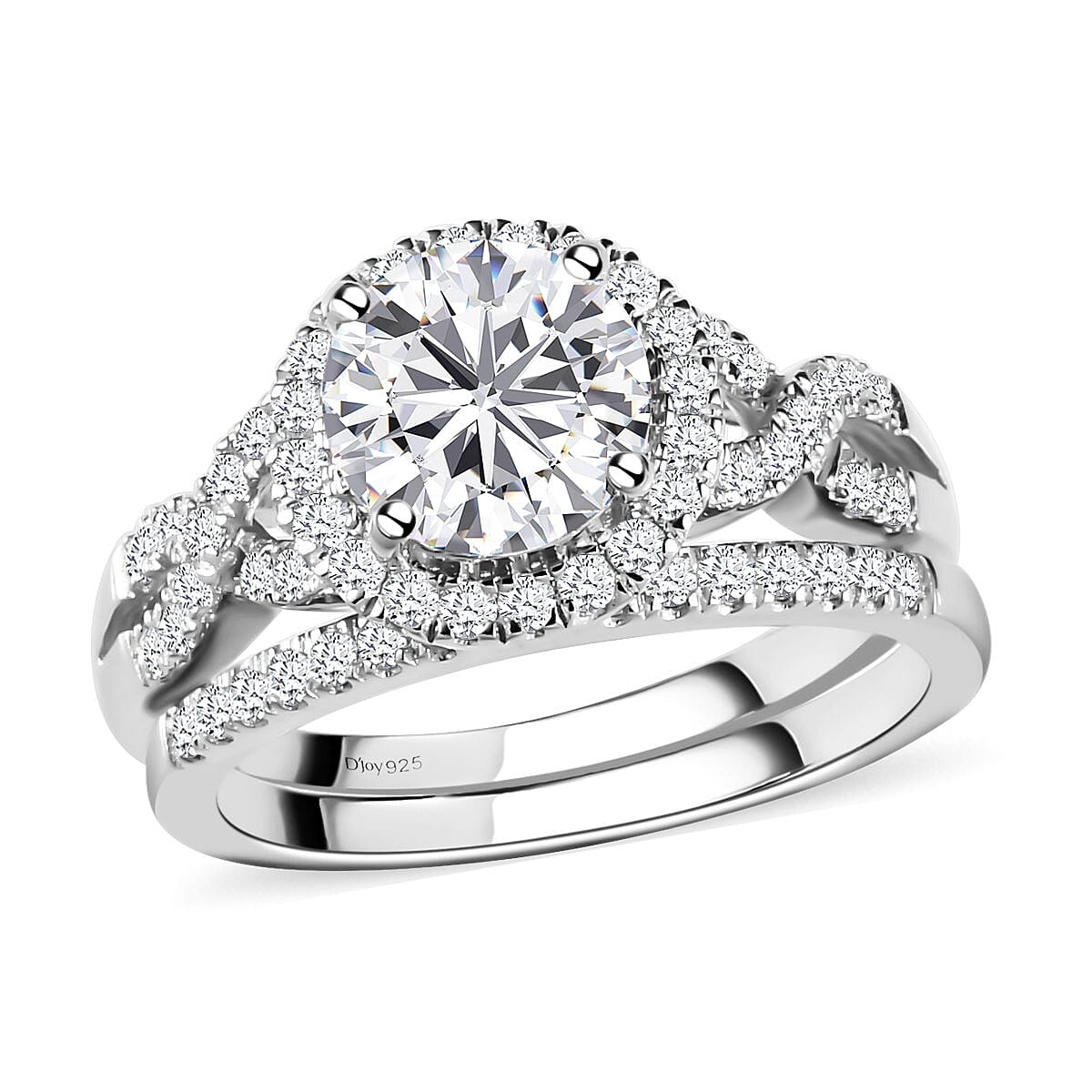 100 Facet Moissanite Bridal Set of 2 Ring in Platinum Over Sterling Silver (Size 8.0) 2.65 ctw