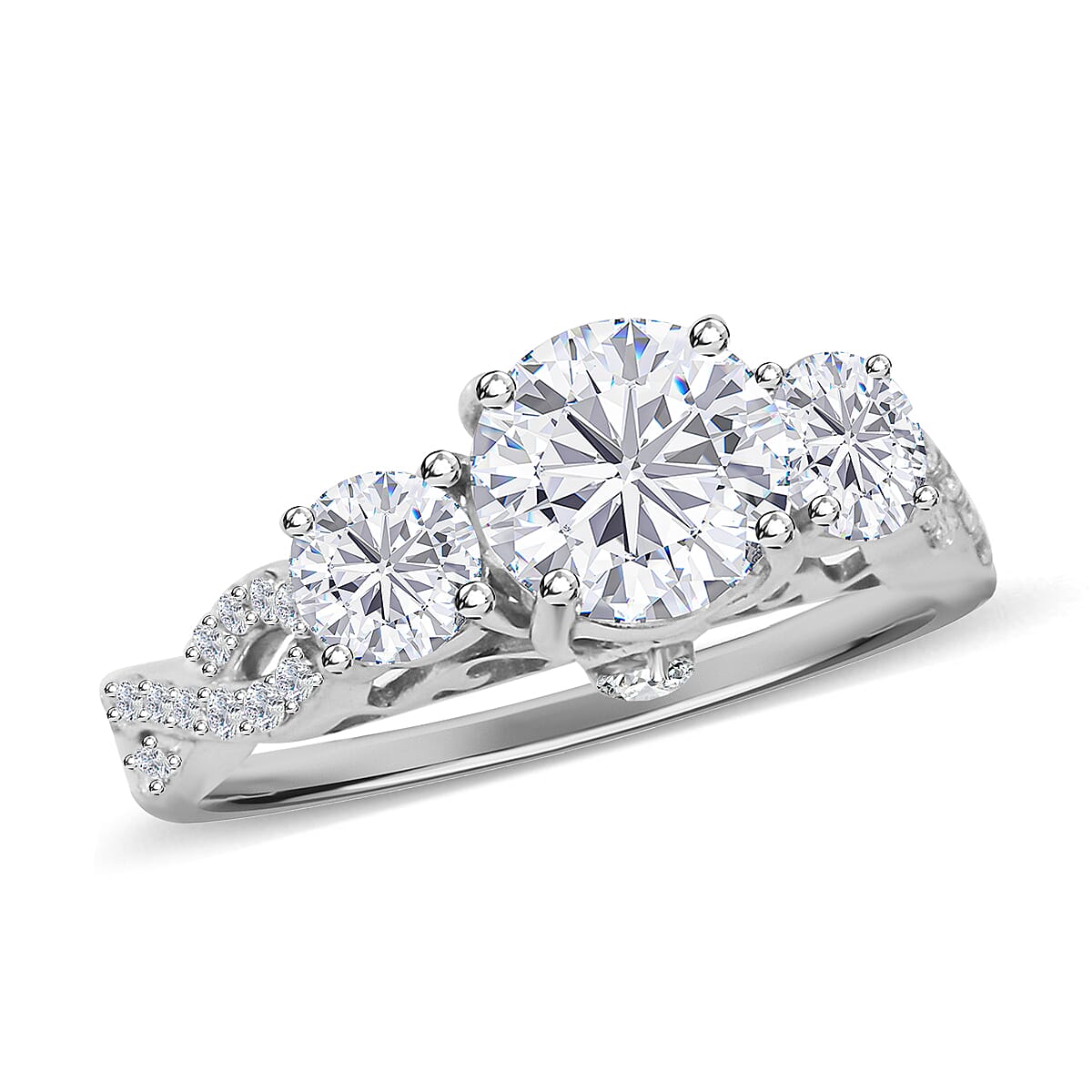 100 Facet Moissanite (VS-EF) Ring in Platinum Over Sterling Silver (Size 10.0) 3.00 ctw