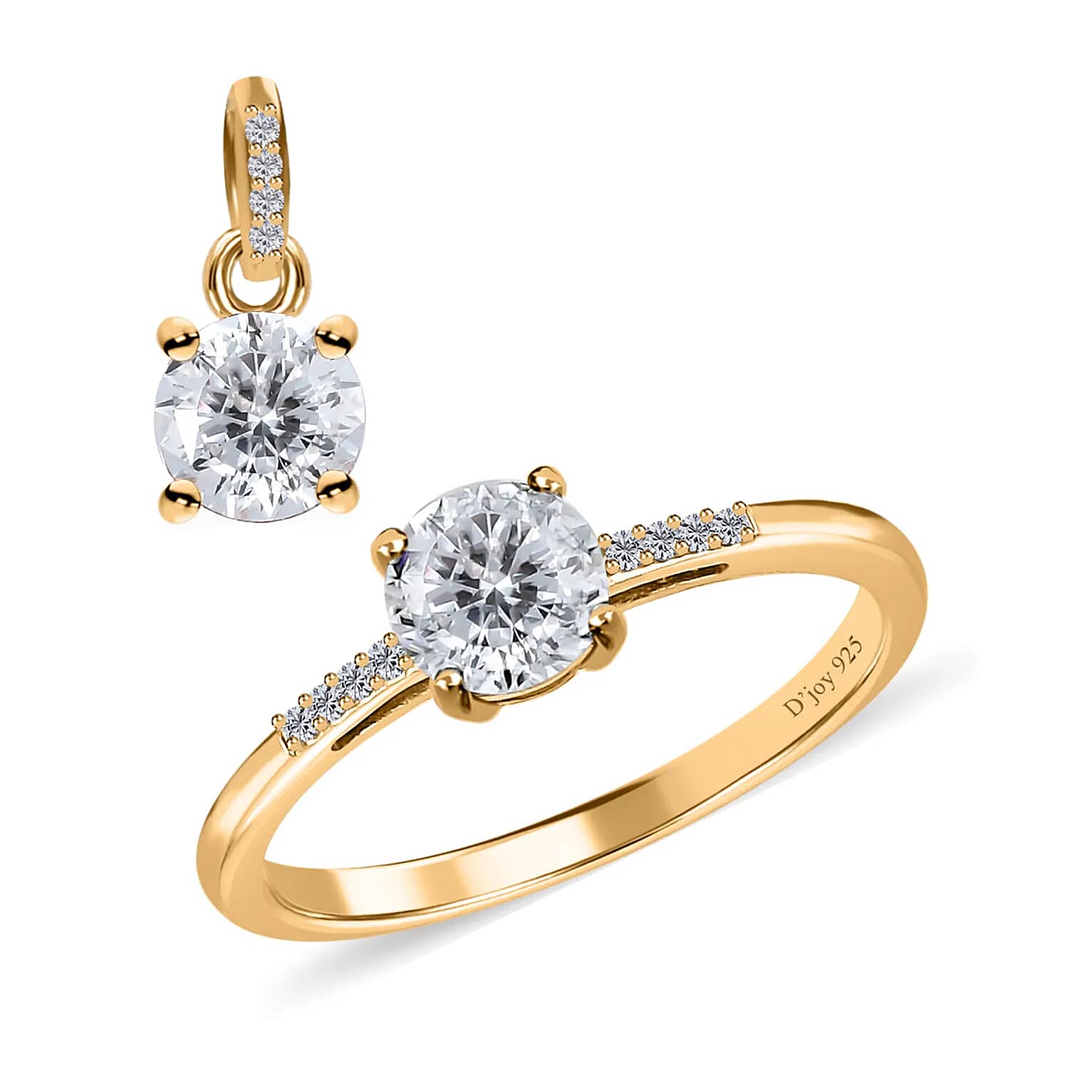 100 Facets Moissanite Solitaire Ring and Pendant without Chain Set in Vermeil Yellow Gold Over Sterling Silver, Moissanite Solitaire Ring, Jewelry Set For Her 1.65 ctw