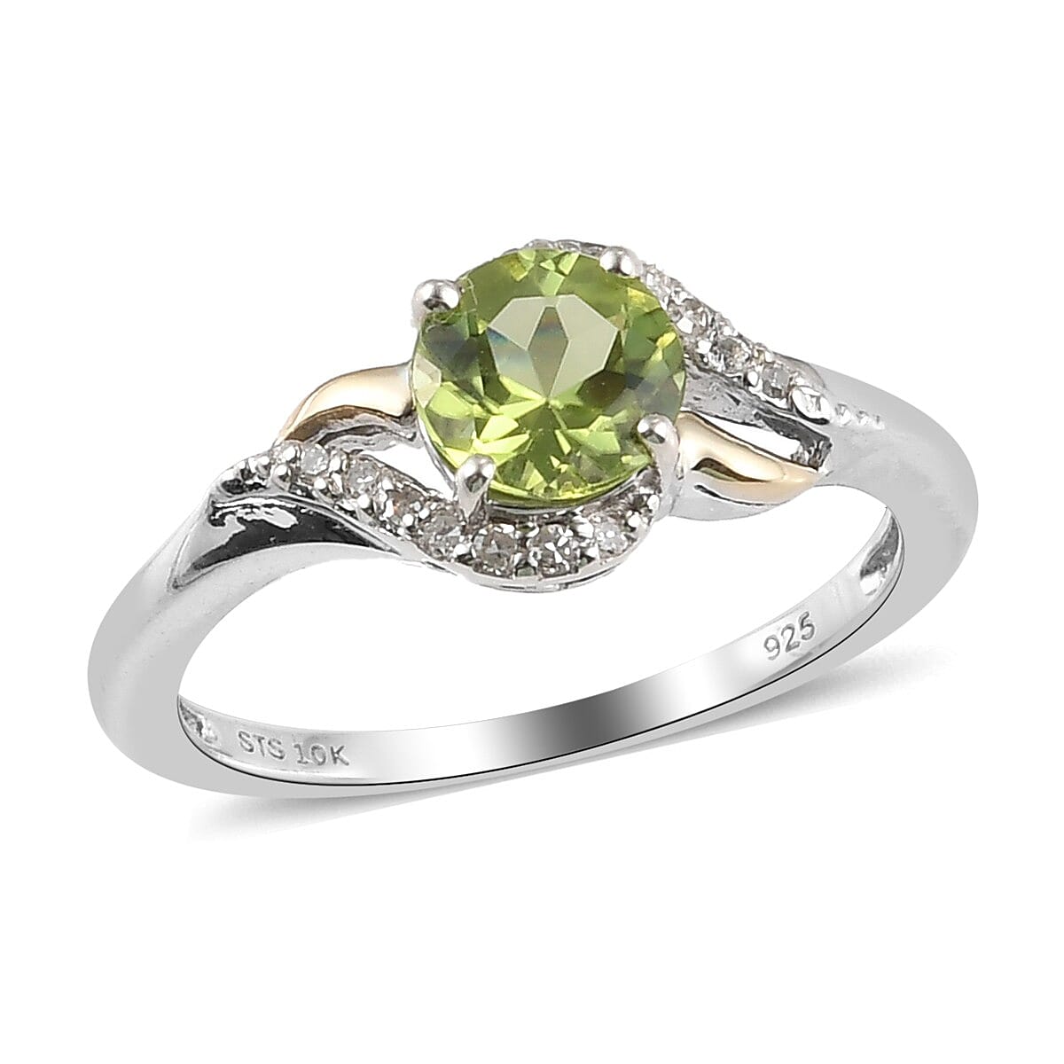 10K Rose Gold Peridot and Diamond Ring in Sterling Silver (Size 7.0) 1.25 ctw