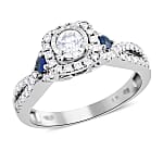 10K White Gold Blue Sapphire and G-H SI Diamond Ring (Size 7.0) 3.20 Grams 0.50 ctw