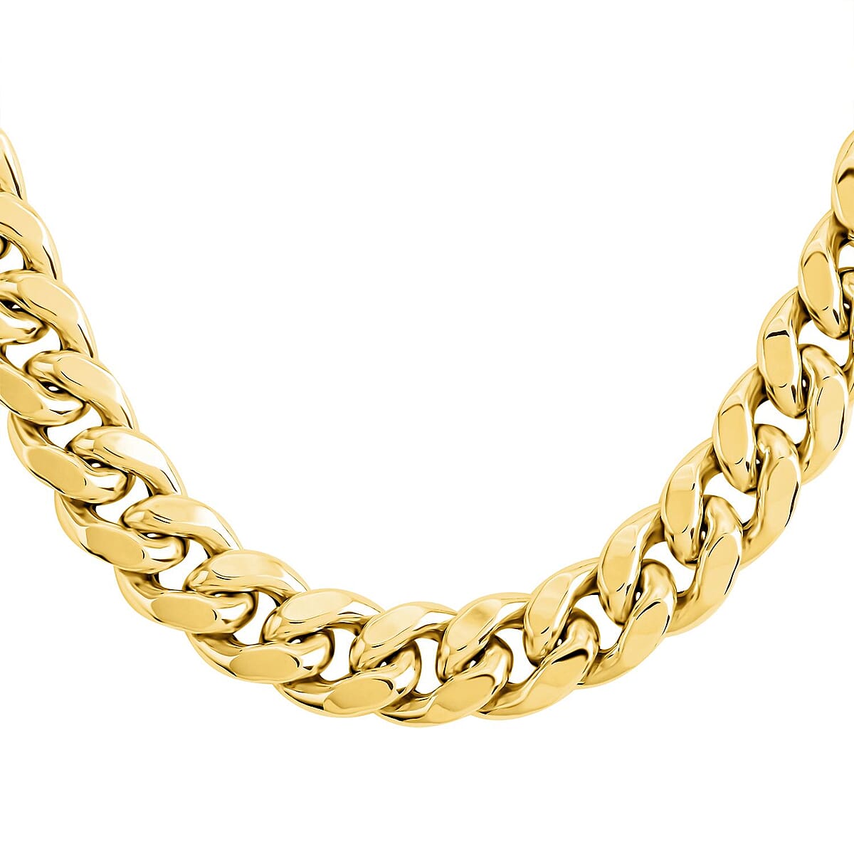Remark a bold statement wearing this lustrous golden-tone Cuban necklace. Superb in every sense, this sleek chain can be worn alone or layered with other neck accessories. Made of 10K yellow gold, this Cuban necklace is a must-have piece of jewelry for any collection.