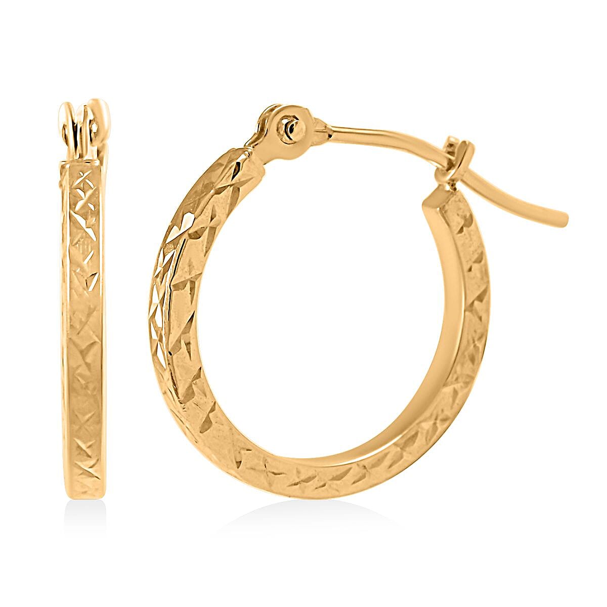 These 10K yellow gold diamond-cut hoop earrings are a type of women jewelry. The earrings are designed in a hoop shape with a diamond-cut texture that gives them a sparkly, reflective finish. Hoop earrings are a classic style that never goes out of fashion, and the diamond-cut design adds a modern twist to this timeless accessory. The 10K gold makes the earrings more affordable than higher-karat gold options, while still providing the beauty and durability of a gold piece.