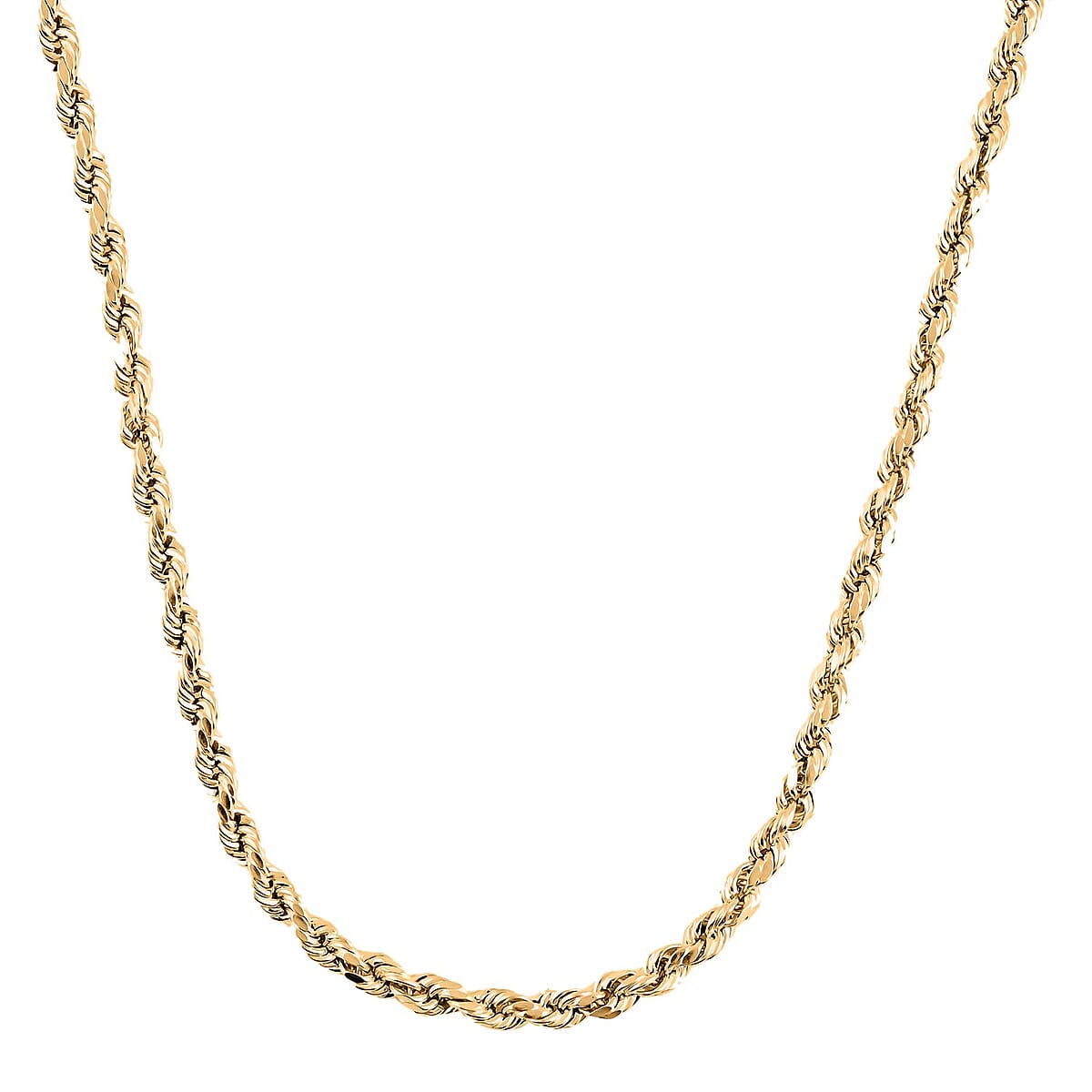 This 10K yellow gold rope necklace exemplifies classic elegance with its intricately woven rope design. Its deep, warm gold tone enhances any outfit, offering both versatility and timeless sophistication to your jewelry collection. Perfect for both everyday elegance and special occasions, this gold necklace is an essential piece for refined style.