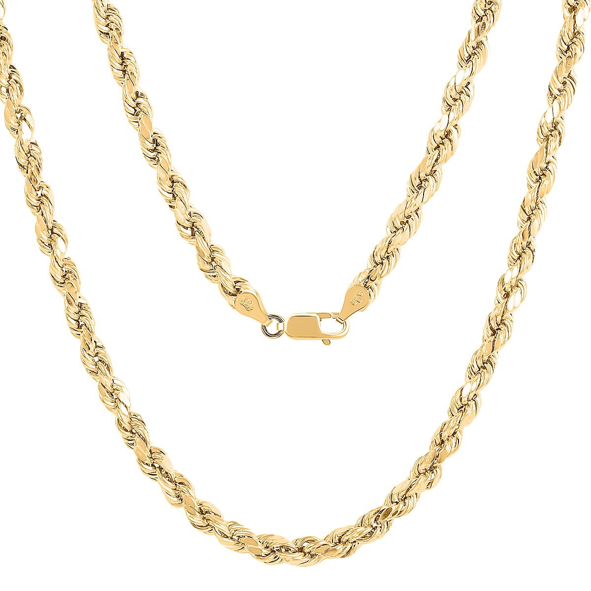 Indulge in the epitome of sophistication with the 10K yellow gold rope chain necklace, a radiant masterpiece designed to adorn and elevate your ensemble to new heights. Crafted with exquisite finesse and boasting a length of 20 inches, this necklace exudes an aura of opulence, making it the quintessential choice for the discerning connoisseur of luxury.