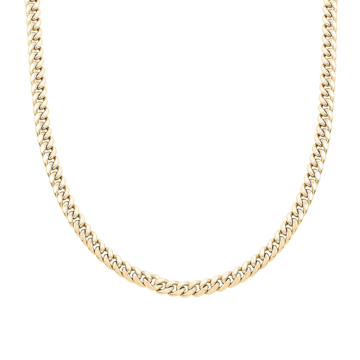 This Miami Cuban chain necklace, crafted in 10K yellow gold, measures 24 inches and is secured with a tab insert clasp. Cuban links are known for their durability and tight, interlocking pattern that lies flat and smooth against the skin, making them both comfortable and strong.