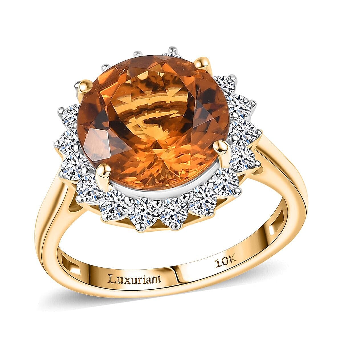 10K Yellow Gold AA LAGOAO Mandarin Citrine, Luxuriant Lab Grown Diamond (G-H, SI) Ring (Size 8.5) 5.33 ctw
