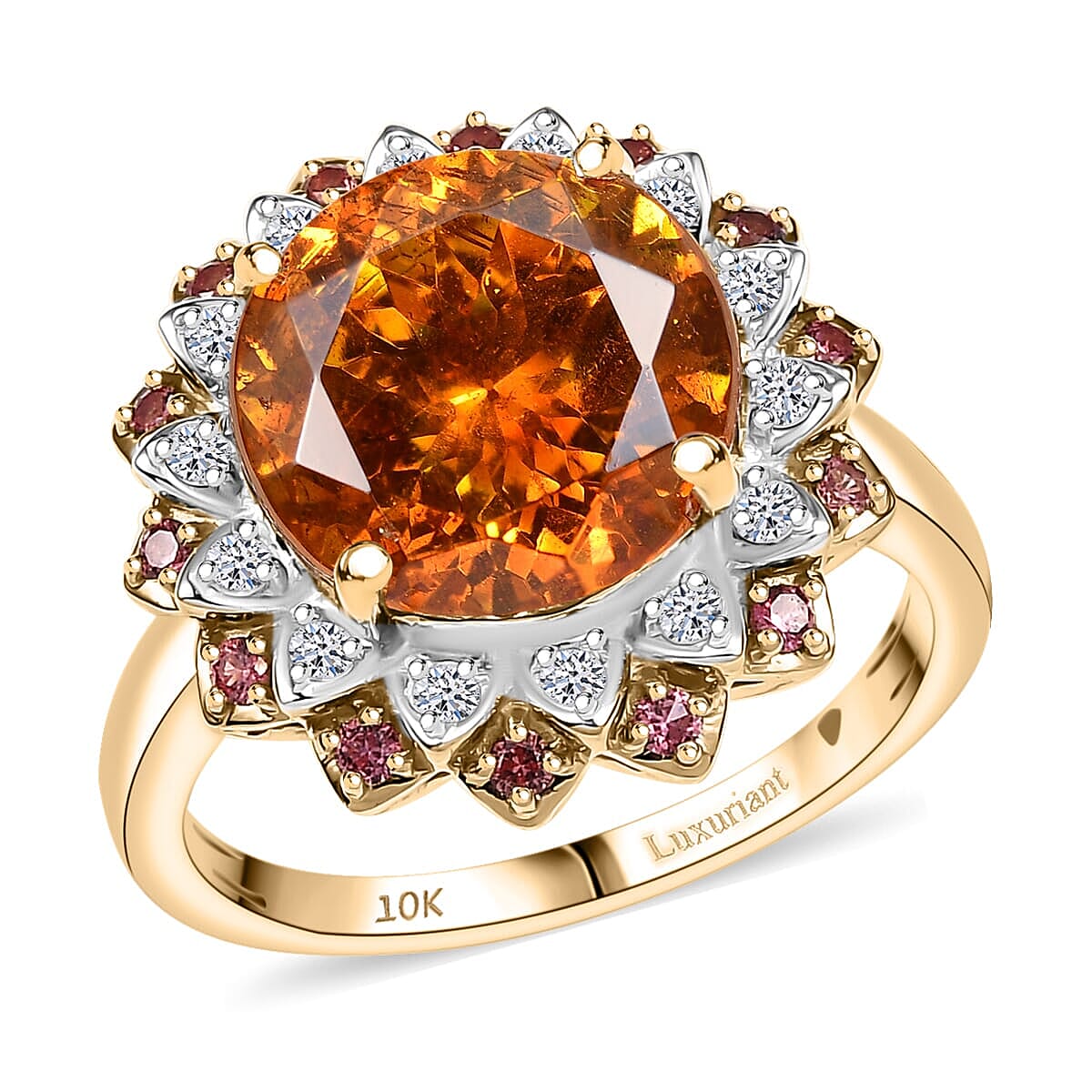 10K Yellow Gold AAA Picos Altos Sphalerite, Padparadscha Sapphire, Luxuriant Lab Grown Diamond (G-H, SI) Ring (Size 8.5) 7.38 ctw